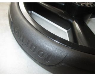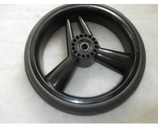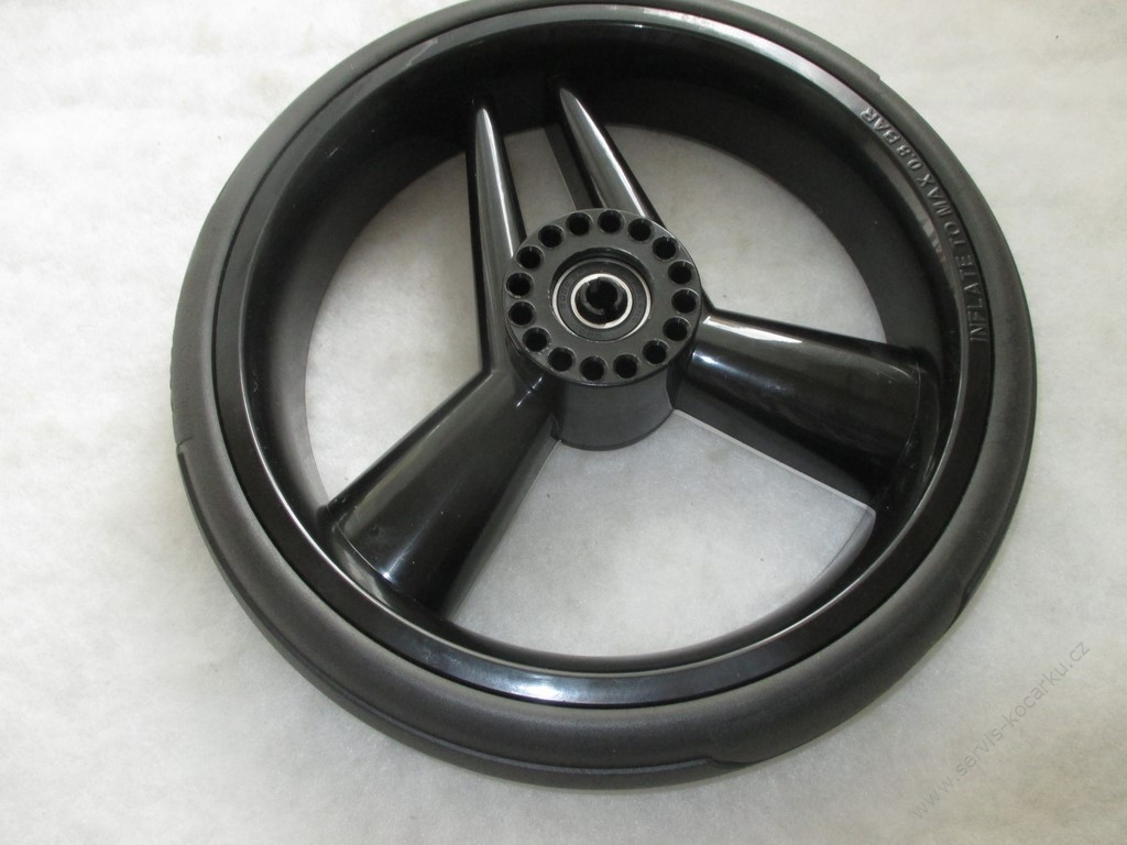 Kolečko k dětskému kočárku, barva černá + bílá, s ložiskem, plastový ráfek o průměru 12", pěna. Cena včetně pevného pastorku brzdy. Kvalitní materiály. Celkový průměr kolečka včetně pláště je cca 285 mm a šířka přes pěnu je cca 59 mm. Na pěně je nápis TOURING. Určeno pro osičky ø 10 mm. Cena za 1 kus.