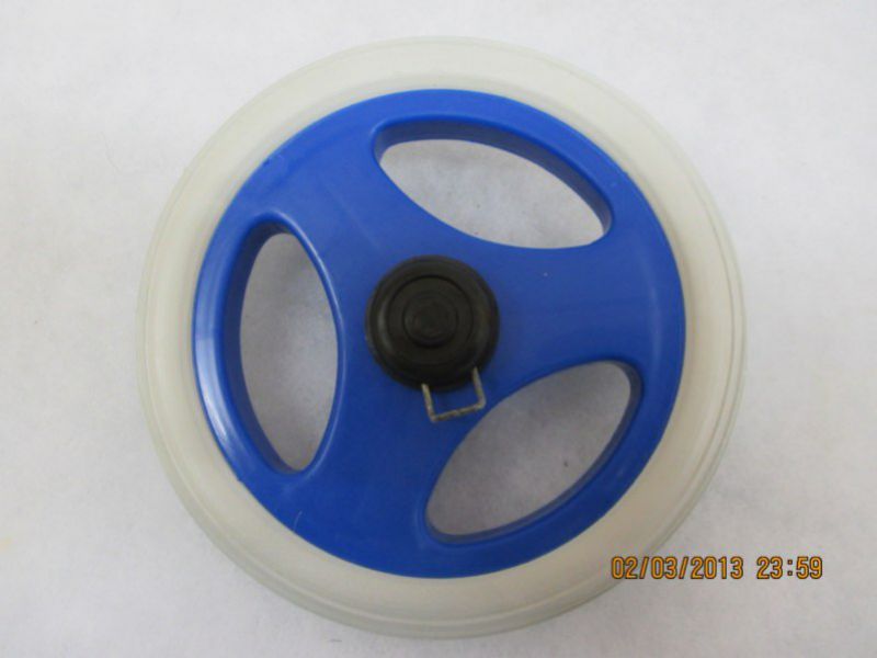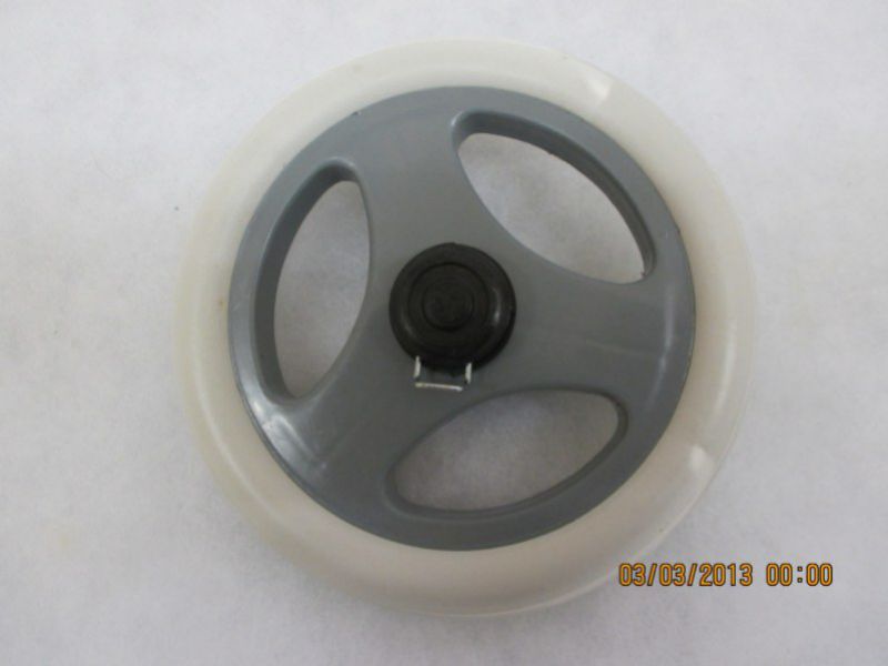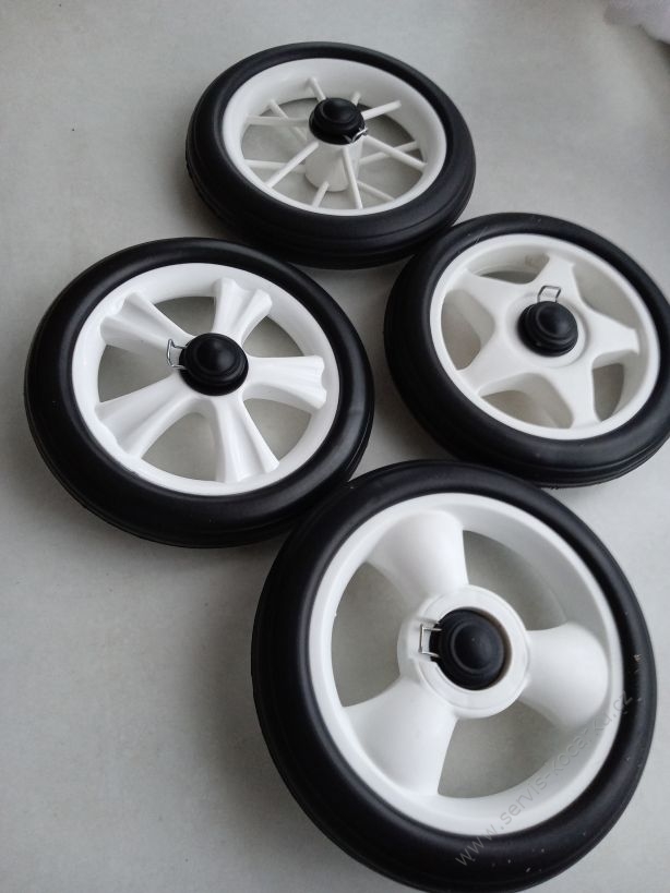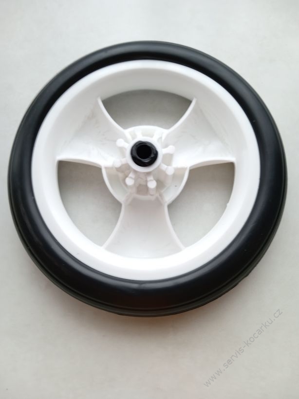 Kolečko ke kočárku K - 10 pro panenky v barvě bílé. Materiál plast, pneu pěna. Určeno pro osičku ø 8 mm. Celkový průměr kolečka je cca 180 mm, šířka přes plášť je 33 mm. Hmotnost 1 kusu je 122 g. Cena za 1 kus.