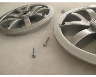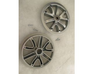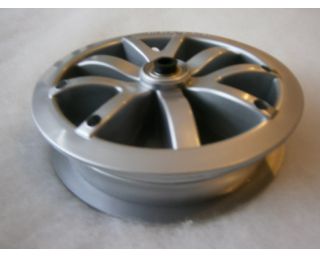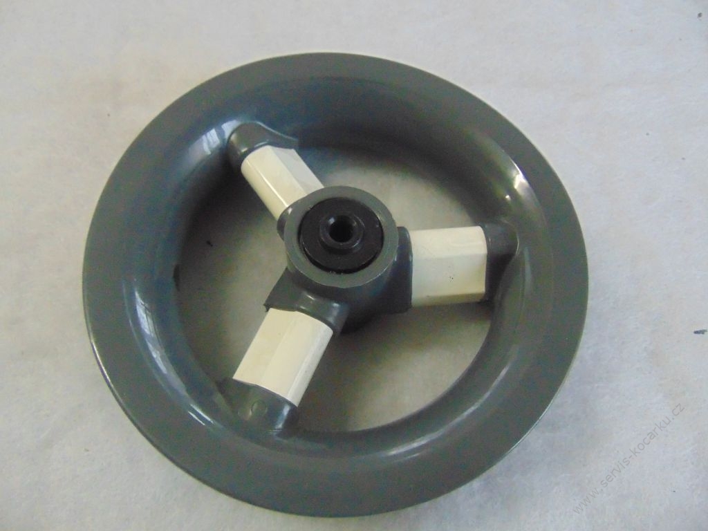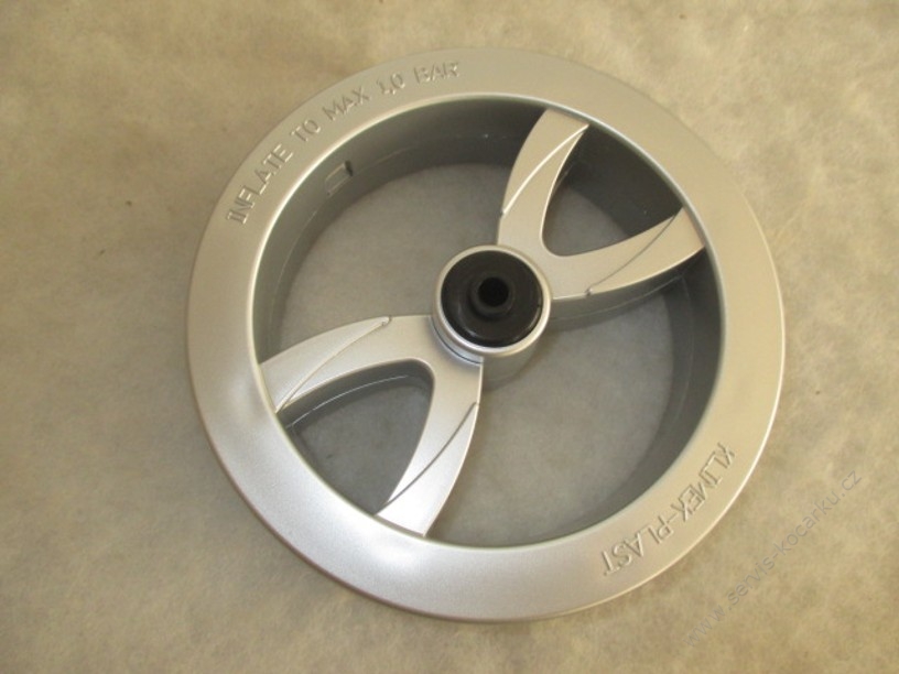 Ráfek kolečka, materiál plast, barva stříbrná matná - lak. Ráfek včetně ložisek. Velikost 10". Rozměry: celkový průměr cca 172 mm, šířka u pláště 42 mm. Hmotnost 1 kusu je 285 g. Cena za 1 kus.